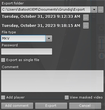 8. If necessary, add a comment to the export. The comment will be displayed as captions when the exported video recording is played back.