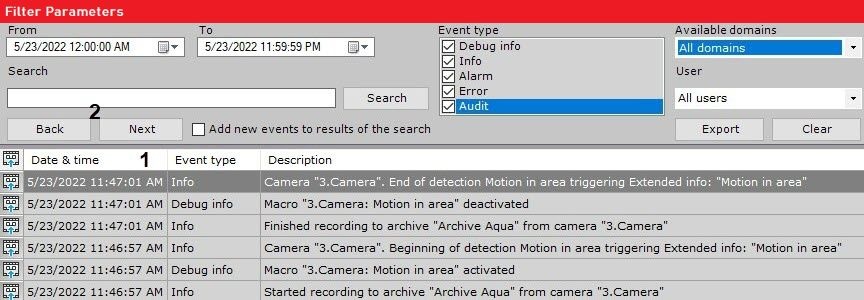 Events in the table are sorted by the date they were registered, beginning with the most recent one.