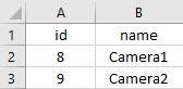 1. Create an Excel file containing two columns: the id column for camera IDs and the name column for camera names.