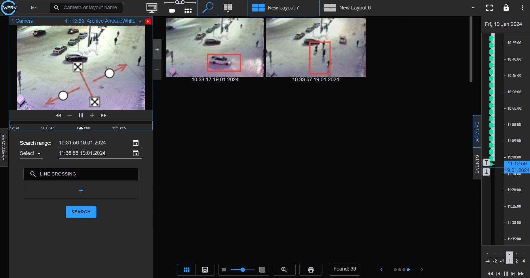 As a result, the interface with the results of a search in the archive by the Motion in the area type of search will open.