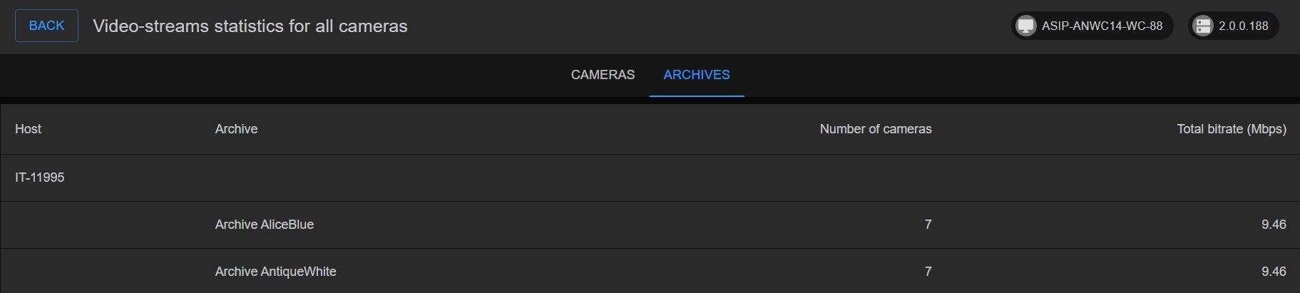 On the ARCHIVES tab, the following information is displayed for each Archive: