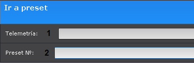 1. Telemetría (1) - seleccione un dispositivo PTZ. Son accesibles los dispositivos de cualquier videocámara PTZ, incluyendo las vinculadas a otro Servidor (si están activadas).