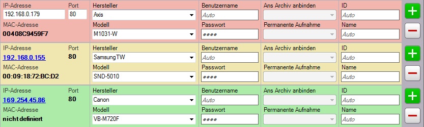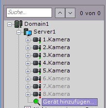 Die Hinzufügung von Videokameras und IP-Geräten zum System erfolgt mit Hilfe des Suchmasters für IP-Geräte.
