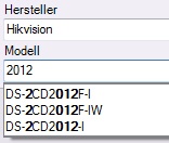 Fehlt ein IP-Gerät in der Suchergebnissen (weil es sich in einem anderen Subnetz befindet oder die Verbindung zu ihm vorübergehend unterbrochen ist), kann es manuell hinzugefügt werden. Dazu müssen Sie den Typ des hinzuzufügenden IP-Geräts (mit internem Speicher oder ohne) wählen, die IP-Adresse und den Anschlussport des Geräts angeben und Hersteller und Modell in dem Bereich mit neutralem Hintergrund auswählen, der sich unter der Suchergebnisliste befindet.