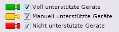 In Abhängigkeit vom Status der gefundenen Geräte werden die Suchergebnisse in unterschiedlichen Farben angezeigt.