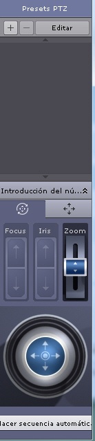 El panel de control de cámaras motorizadas se presentará automáticamente en la parte derecha da la pantalla al activarse, en el modo de tiempo real, la ventana de videovigilancia de la cámara motorizada.