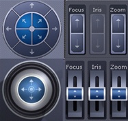 La representación del joystick 3D virtual y de la escala de regulación depende del tipo de cámara PTZ: con mando discreto o continuo deGiro, Inclinación, Zoom, Foco, Iris.