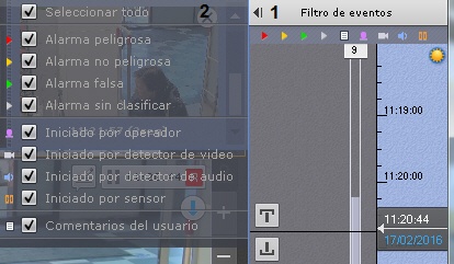 Los eventos del tipo seleccionado serán presentados en la escala de tiempo (véase la sección Escala de tiempo) y en la lista de eventos (véase la sección Lista de eventos).
