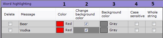 - Highlighting color (1). In the appropriate column, click the button and choose a color.