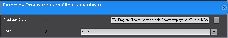 Diese Aktion startet ein externes Programm auf einem Computer, auf dem ein Client der Softwareplattform Axxon Next gestartet wurde.