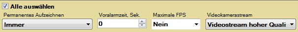 Bei Wahl des Wertes Immer erfolgt eine permanente Aufzeichnung des Videostreams ins Archiv.