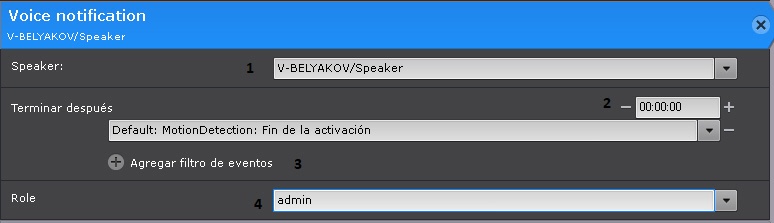 3. Si se selecciona un altavoz del sistema con el modo de reproducción En clientes para la notificación, puede especificar usuarios al seleccionar un cargo (4).